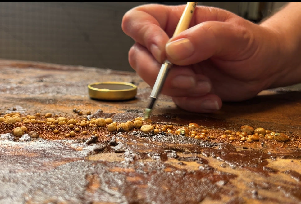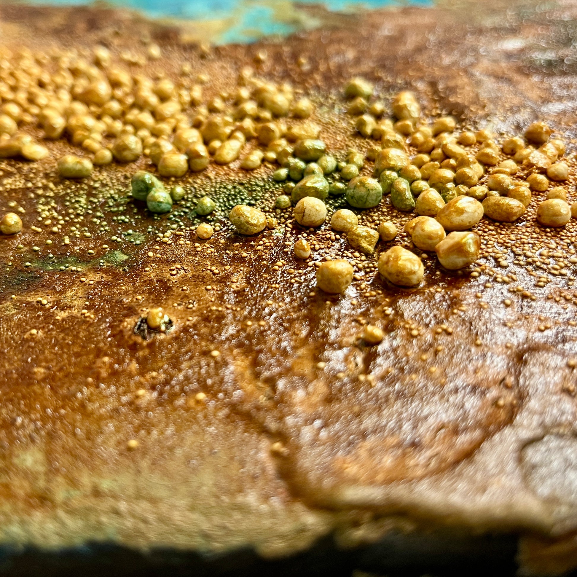 • Medium: Acrylic, real rust, texture paste, metallic pigments, beads
